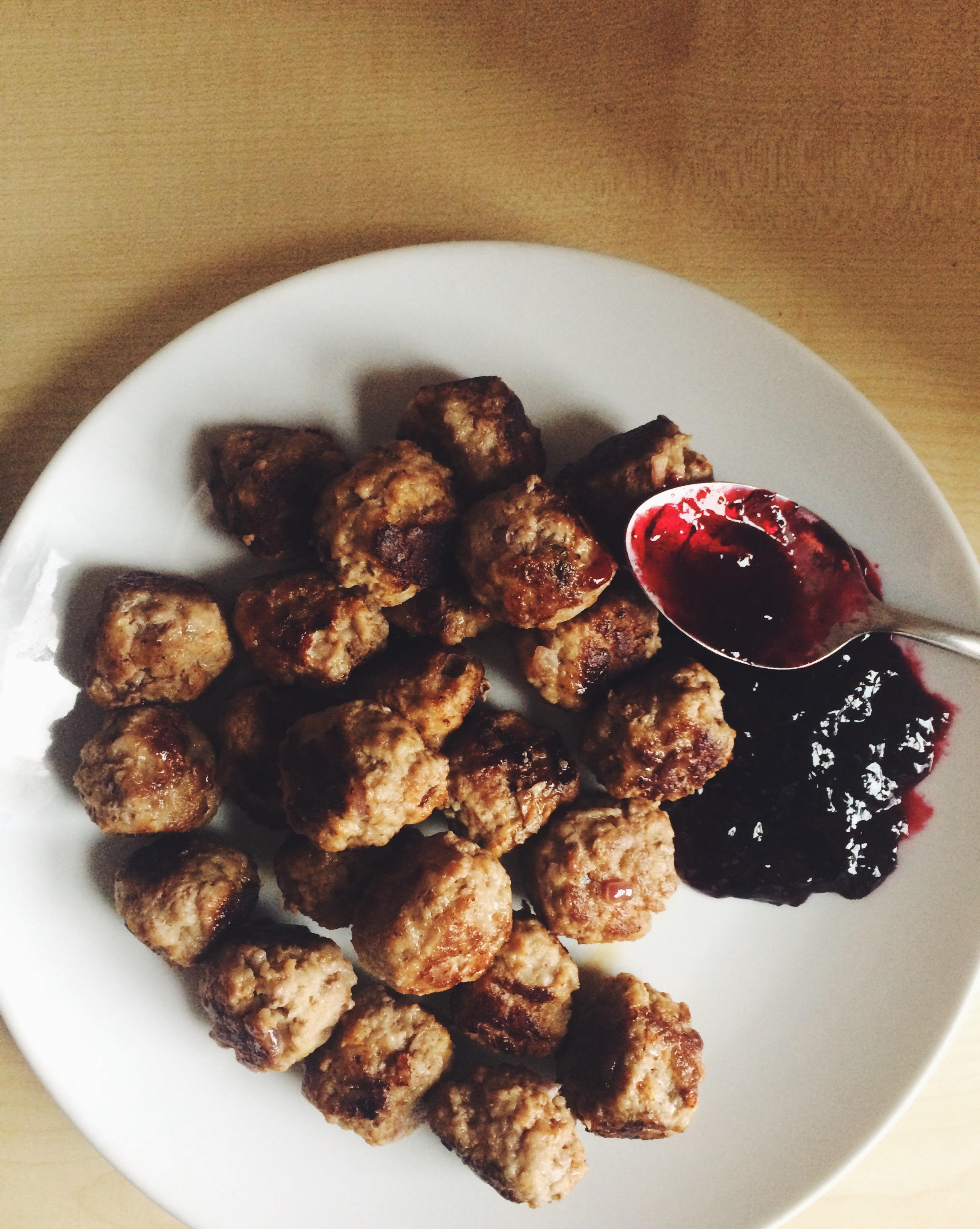 Anyway, amidst this supermarket-diatribe, there is a recipe. Sometimes my shopping basket is full of Thai green curry paste, Gü chocolate cheesecakes with that molten caramel layer, and a plastic-wrapped garlic flat bread. On other occasions, however, I buy blackberries, star anise, pork mince, beef mince, onions and double cream. With a basket full and a well-worn recipe for Swedish meatballs with blackberry anise sauce waiting for me at home, I do tend to feel a bit smug at the checkout.